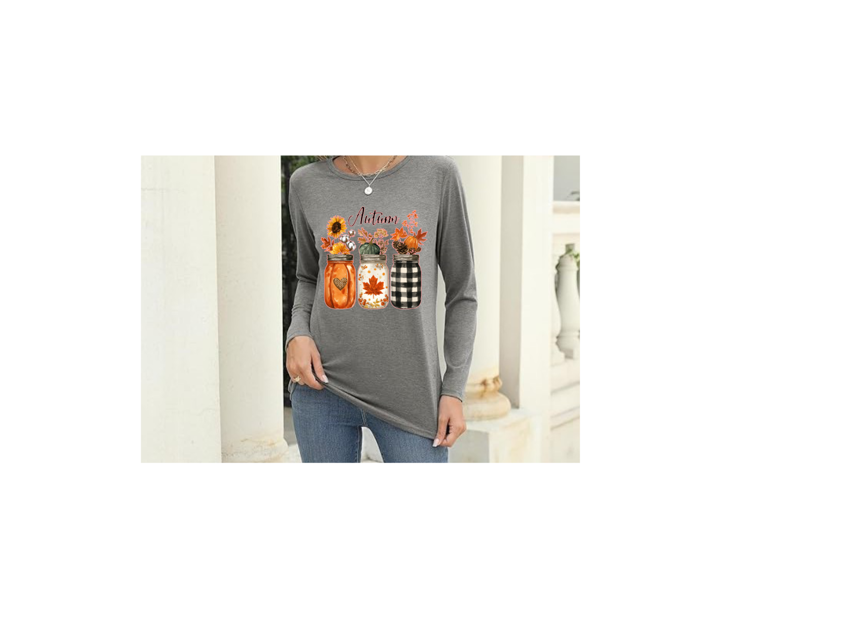 Embrace the charm of autumn with this cute long-sleeve women's crew neck T-shirt featuring a playful jars design. Designed for comfort and style, it offers a soft fit ideal for layering or wearing on its own during cooler months. The cozy long sleeves and classic crew neck provide versatile wearability, while the seasonal design adds a festive touch to your wardrobe. Perfect for casual outings or relaxed days at home, this T-shirt blends comfort with seasonal creativity.