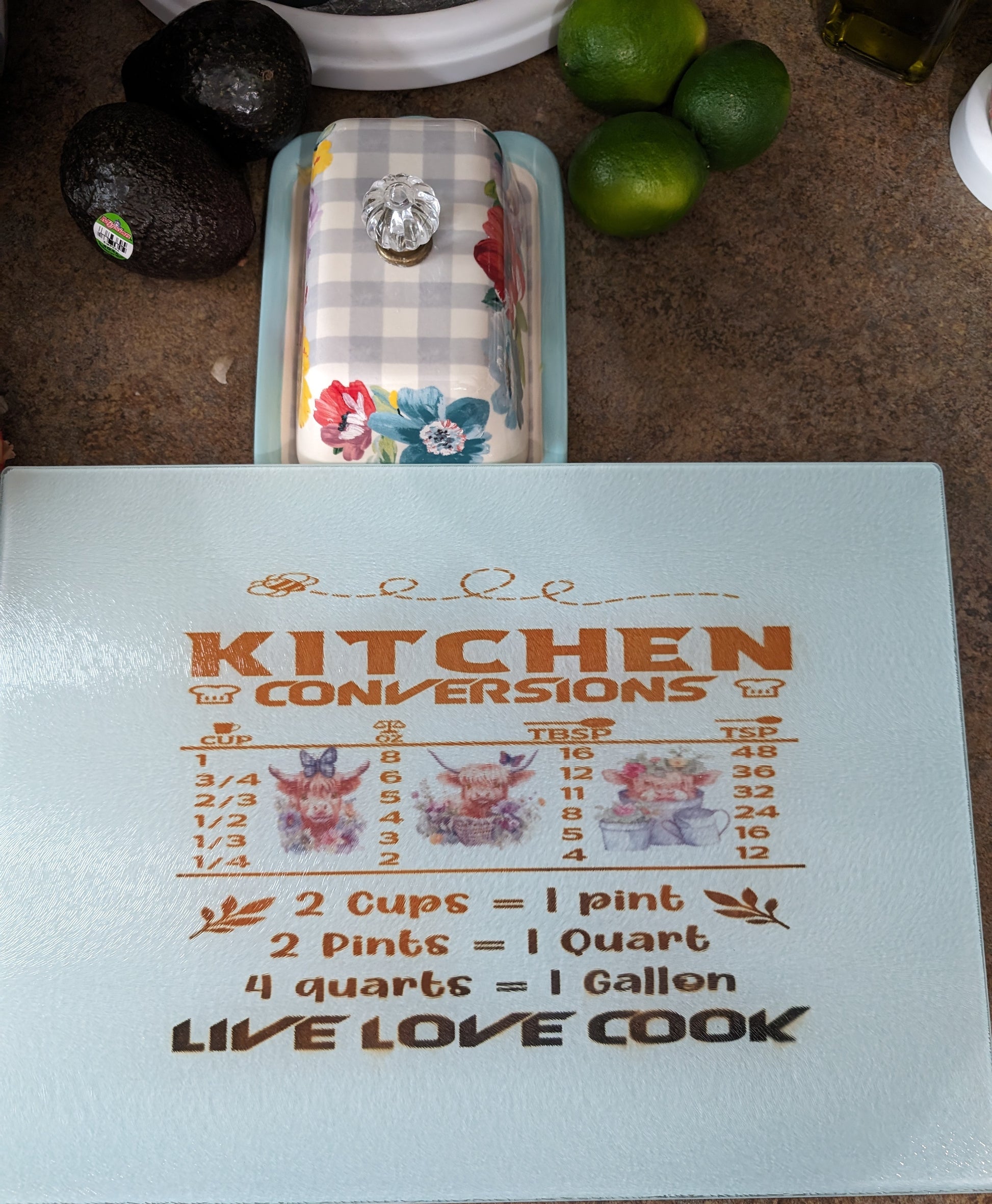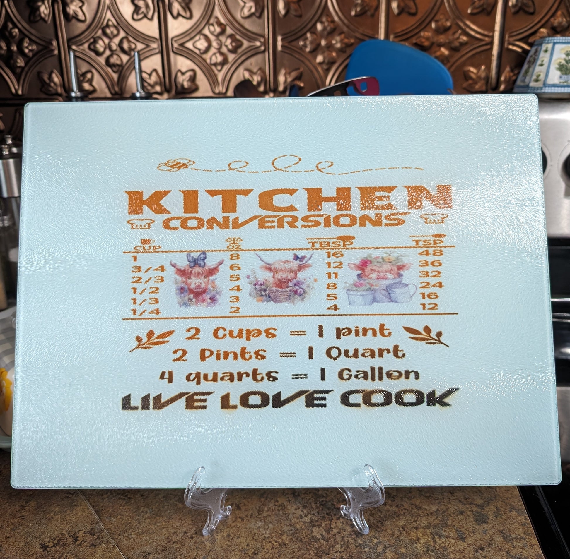 This 15.1 X 11 funny highland cow kitchen cutting board is made of durable tempered glass, providing a sturdy and long-lasting surface for all your food preparation needs. With its playful design, it adds a touch of humor to your kitchen while also being a functional tool for converting measurements.