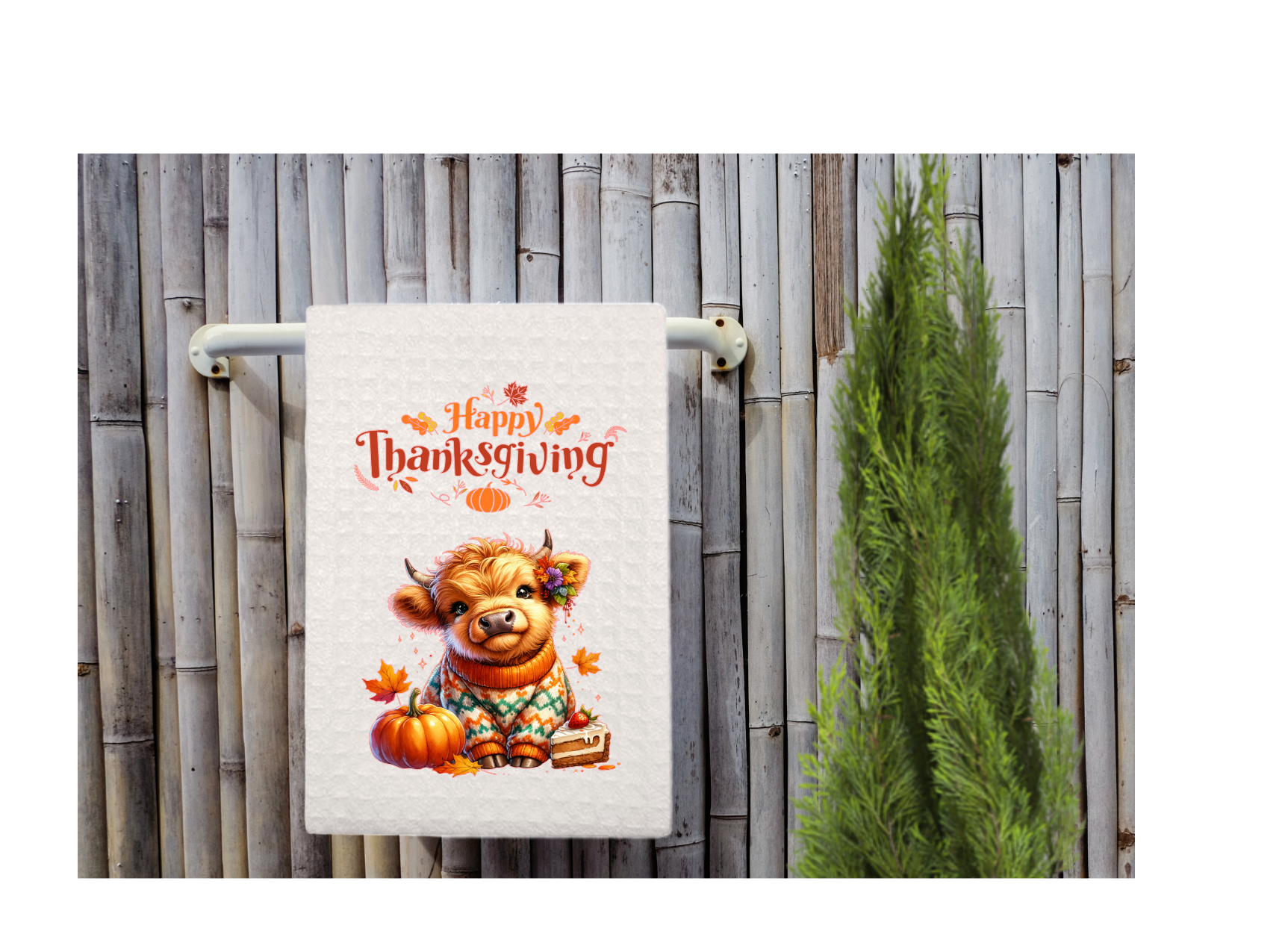 Celebrate Thanksgiving with this charming highland cow dish towel, expertly crafted to combine rustic style and functionality. Made from durable, absorbent fabric, it efficiently handles everyday kitchen tasks while adding a warm, festive touch. The detailed highland cow design enhances your seasonal décor, making it both a practical and decorative addition to your home during the holidays.