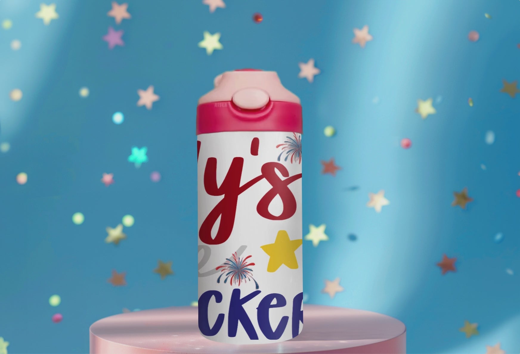 The 12 oz kids water bottle features a little miss America